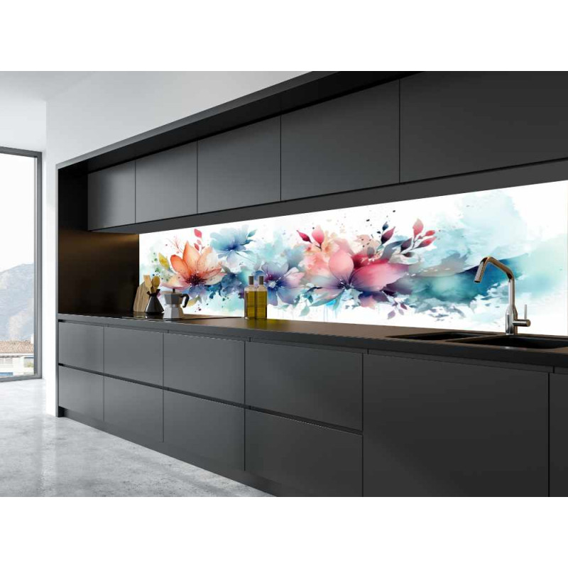 Jeśli chodzi o naniesiony na panel wzór to jest on nadrukowany na drukarce wielkoformatowej przy użyciu technologi środowiskowej. Dodatkowo nadruk zabezpieczony jest lakierem UV co nadaje mu wyjątkowej wytrzymałości. Jakość druku jest oparta o grafikę wysokiej rozdzielczości. Sam Panel Kuchenny jest idealnie docięty do wymaganego rozmiaru.