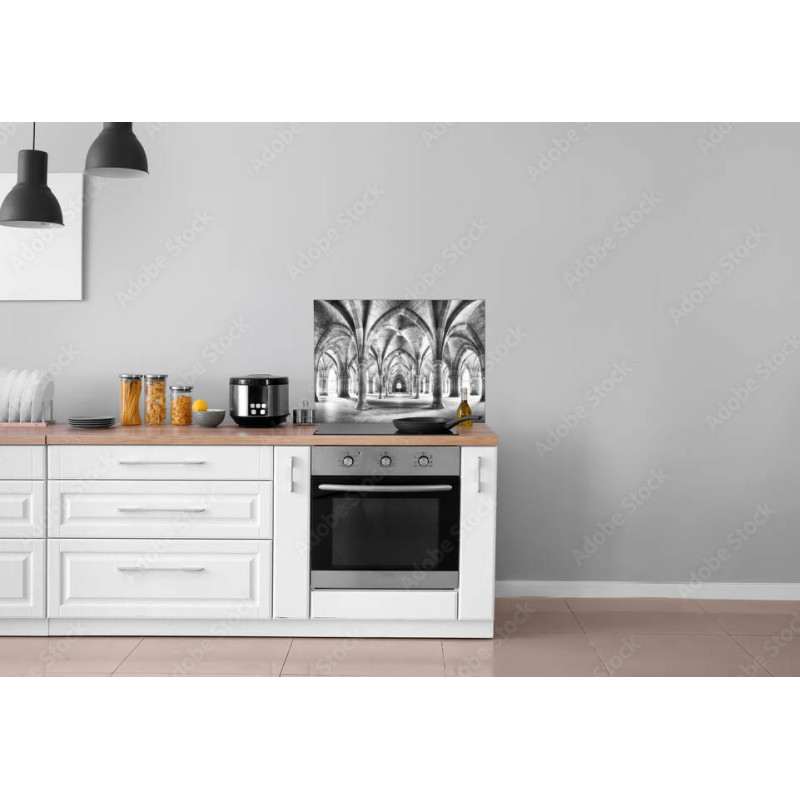 Materiał z którego wykonujemy Panele Kuchenne to DiBond. Jest to płyta kompozytowa złożona z 3 warstw. Dwie zewnętrzne to aluminium połączone rdzeniem polietylenowym. Taka płyta jest bardzo twarda i wytrzymała a dzięki swym parametrom jakim jest wodoodporność, sztywność i gładkość powierzchni swietnie nadaje się do zastosowania w kuchni jako panel kuchenny. Produkty wykonane z tego materiału charakteryzują się pierwszorzędną jakością. Jeśli chodzi o sam materiał to jest również odporny na ciepło emitowane przez kuchenki elektryczne i indukcyjne. Przy kuchence gazowej zalecamy zastosowanie odstępu od panelu ok. 10-15 cm.