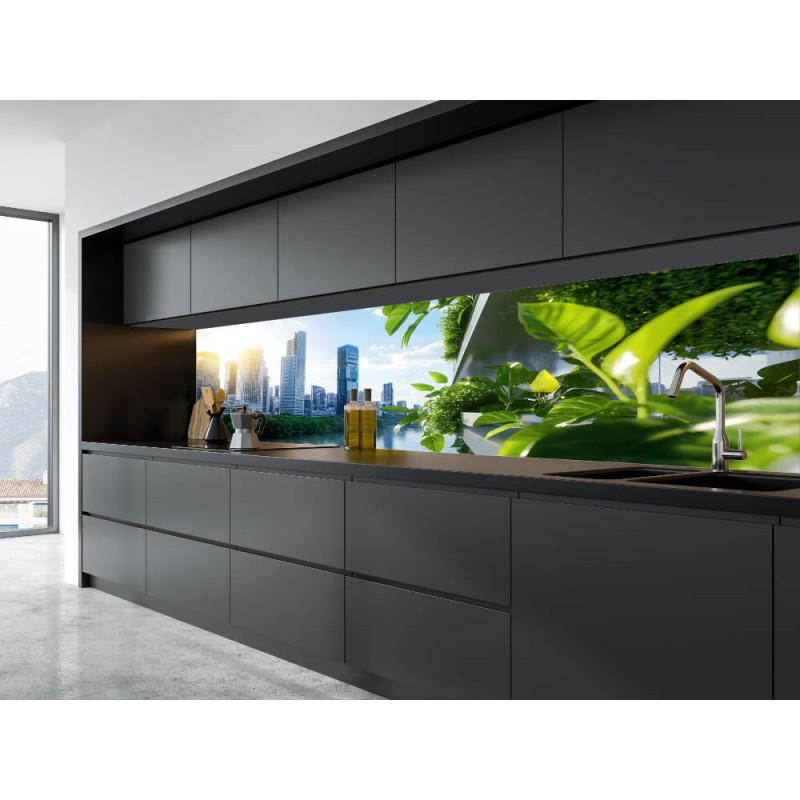 Jeśli chodzi o naniesiony na panel wzór to jest on nadrukowany na drukarce wielkoformatowej przy użyciu technologi środowiskowej. Dodatkowo nadruk zabezpieczony jest lakierem UV co nadaje mu wyjątkowej wytrzymałości. Jakość druku jest oparta o grafikę wysokiej rozdzielczości. Sam Panel Kuchenny jest idealnie docięty do wymaganego rozmiaru.