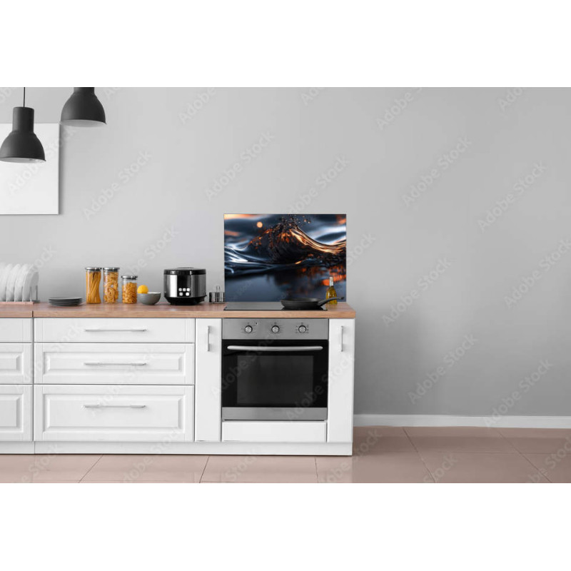 Materiał z którego wykonujemy Panele Kuchenne to DiBond. Jest to płyta kompozytowa złożona z 3 warstw. Dwie zewnętrzne to aluminium połączone rdzeniem polietylenowym. Taka płyta jest bardzo twarda i wytrzymała a dzięki swym parametrom jakim jest wodoodporność, sztywność i gładkość powierzchni swietnie nadaje się do zastosowania w kuchni jako panel kuchenny. Produkty wykonane z tego materiału charakteryzują się pierwszorzędną jakością. Jeśli chodzi o sam materiał to jest również odporny na ciepło emitowane przez kuchenki elektryczne i indukcyjne. Przy kuchence gazowej zalecamy zastosowanie odstępu od panelu ok. 10-15 cm.